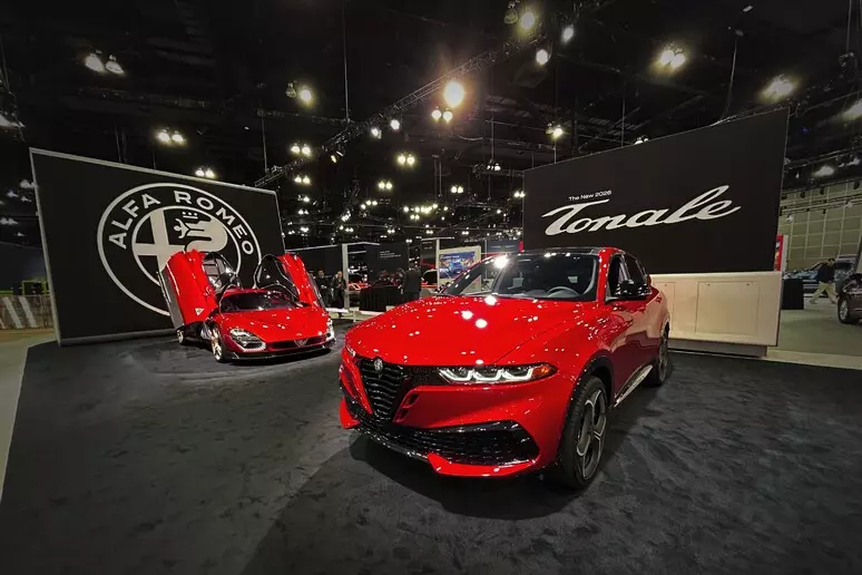 Sotto il cofano ruggisce un motore V6 biturbo da 630 CV che le consente prestazioni eccezionali: accelerazione da 0 a 100 km/h in meno di tre secondi e velocità massima di 333 km/h. I visitatori del Los Angeles Auto Show possono ammirare, per la prima volta in USA, anche la Nuova Tonale. Si tratta dell'evoluzione del primo C-SUV del marchio, che rinnova il proprio carattere sportivo e il fascino inconfondibile del design italiano. In particolare, la Nuova Tonale affina ulteriormente le sue eccellenti doti dinamiche, offrendo un'esperienza di guida autenticamente Alfa Romeo grazie al perfetto bilanciamento dei pesi, allo sterzo più diretto del segmento, ai freni Brembo dedicati e alle sospensioni elettroniche DSV che coniugano comfort e precisione. Il design degli esterni di Tonale si presenta ancora più iconico, grazie a proporzioni scolpite e a una carreggiata allargata, mentre sul nuovo frontale spiccano l'inedito scudetto concavo e il trilobo rivisitato, che conferiscono un carattere più deciso. Nuovi anche i cerchi da 19 e 20 pollici interpretano in chiave moderna l'eredità stilistica di Alfa Romeo, trasmettendo forza e dinamismo. Anche l'abitacolo evolve nello stile e nella qualità percepita, con raffinate combinazioni in pelle rossa o Alcantara bicolore nero e bianco. La nuova Alfa Romeo Tonale evolve anche il concetto di personalizzazione grazie alla gamma colori che si arricchisce di tre nuove tinte metallizzate - Rosso Brera, Verde Monza e Giallo Ocra - portando a otto le possibilità di personalizzazione, ulteriormente ampliate dalla scelta del tetto nero a contrasto. L'esemplare esposto al Los Angeles Auto Show è una Tonale Sport Speciale di colore Rosso Brera equipaggiata con un propulsore specifico per il mercato nordamericano: il 2.0 litri Turbo benzina da 268 HP (circa 272 CV) e coppia 295 lb-ft (circa 401 Nm).