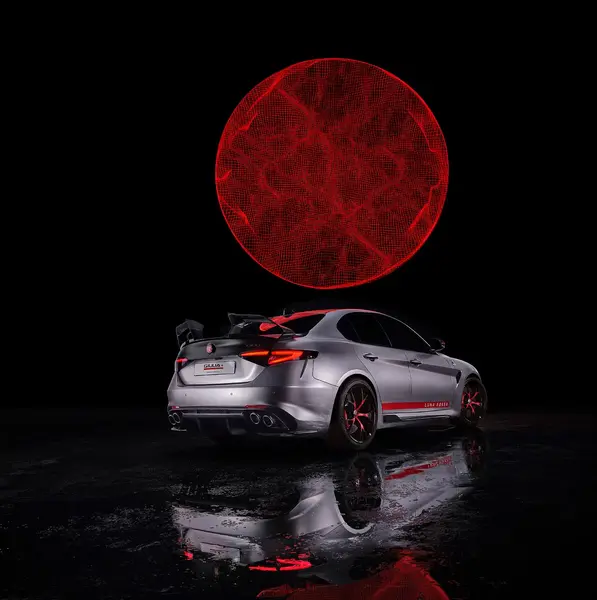Prestazioni estreme Il segreto delle eccezionali prestazioni della Giulia Quadrifoglio Luna Rossa risiede nel nuovo pacchetto aerodinamico in carbonio, sviluppato per massimizzare efficienza e stabilità senza compromettere la velocità di punta. Tutta la vettura è stata sottoposta a interventi mirati per migliorare la performance aerodinamica globale, preservando al tempo stesso l’ottimo bilanciamento originale: più carico sì, ma distribuito in modo armonioso, praticamente identico alla configurazione di serie. Questo risultato nasce da un’attenzione maniacale alla gestione raffinata di ogni singolo flusso d’aria. Ogni dettaglio è stato studiato per guidare l’aria con precisione, riducendo turbolenze e sfruttando ogni vortice utile per generare stabilità ed efficienza. Il risultato è impressionante: Giulia Quadrifoglio Luna Rossa genera circa 140 kg di carico aerodinamico a 300 km/h, raggiungendo un valore circa di cinque volte superiore rispetto alla versione di serie. Sotto il cofano pulsa l’iconico 2.9 V6 biturbo da 520 CV, abbinato al differenziale autobloccante meccanico. Questa soluzione ottimizza il trasferimento di coppia, aumentando stabilità, agilità e velocità in curva. Il risultato è una vettura che non solo accelera con forza, ma affronta ogni curva con precisione, incarnando la perfetta sintesi tra aerodinamica, meccanica e passione italiana.