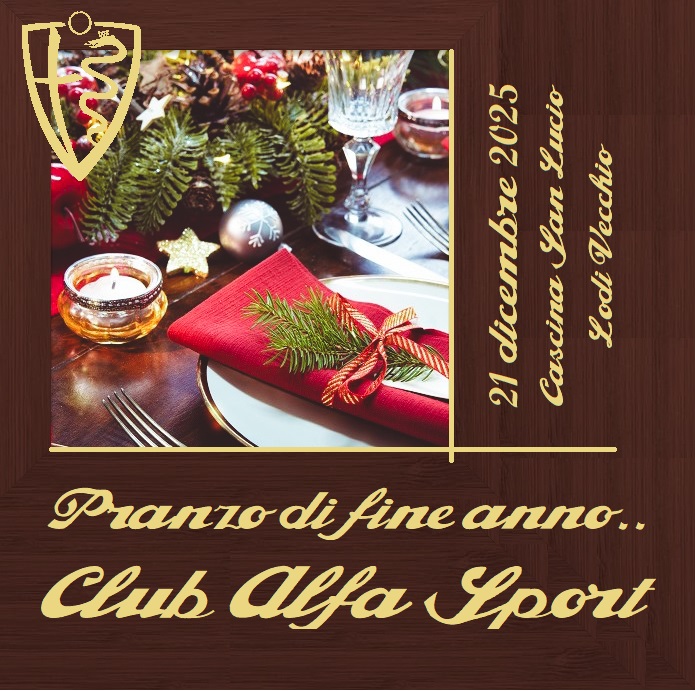 Evento Carissimi Soci, carissimi amici, siamo giunti anche quest'anno al termine della nostra attività sociale; un'annata che ci ha visto insieme in molti momenti. Abbiamo aperto il 2025 con il raduno "Club Alfa Sport decolla a Volandia", poi festeggiato i trent'anni di Gtv & Spider sul Lago di Garda, proseguito con due splendidi raduni estivi "La dama bianca, le Alfa e il vino!" e "Club Alfa Sport sulla Via delle Gallie", partecipato al "Raduno Club Amici 2025" in quel di Pastrengo, ricordato l'Ing Ugo Gobbato con un evento a lui dedicato in occasione della sua scomparsa, avvenuta tragicamente ottant'anni fa e siamo stati presenti con le nostre Alfa Romeo ad un paio di momenti in piazza, a Saronno e presso il Tiro a Segno nazionale di Rho. Infine, eccoci qui a festeggiare tutti insieme per donarci gli auguri per le imminenti festività e presentare la prossima stagione 2026.